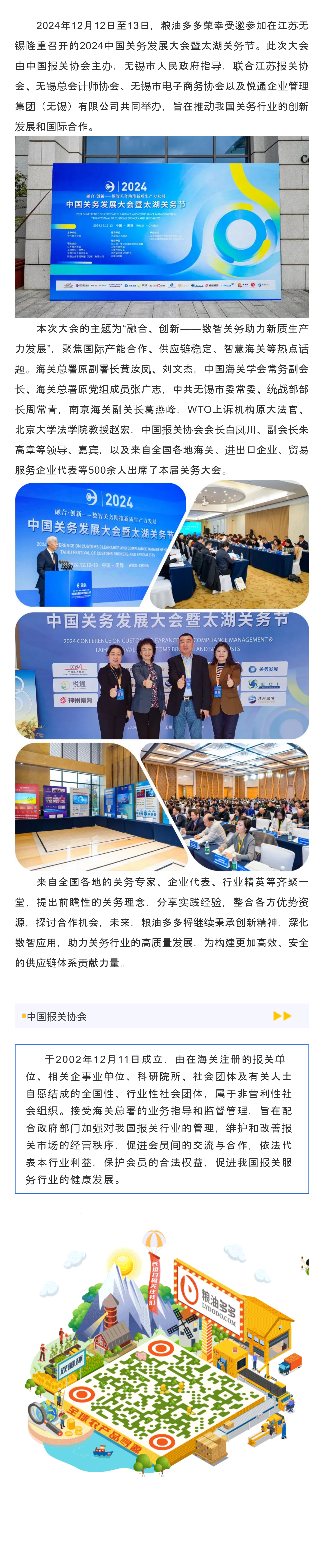 Liangyou Duoduo was invited to attend the 2024 China Customs Affairs Development Conference and the Taihu Customs Affairs Festival.