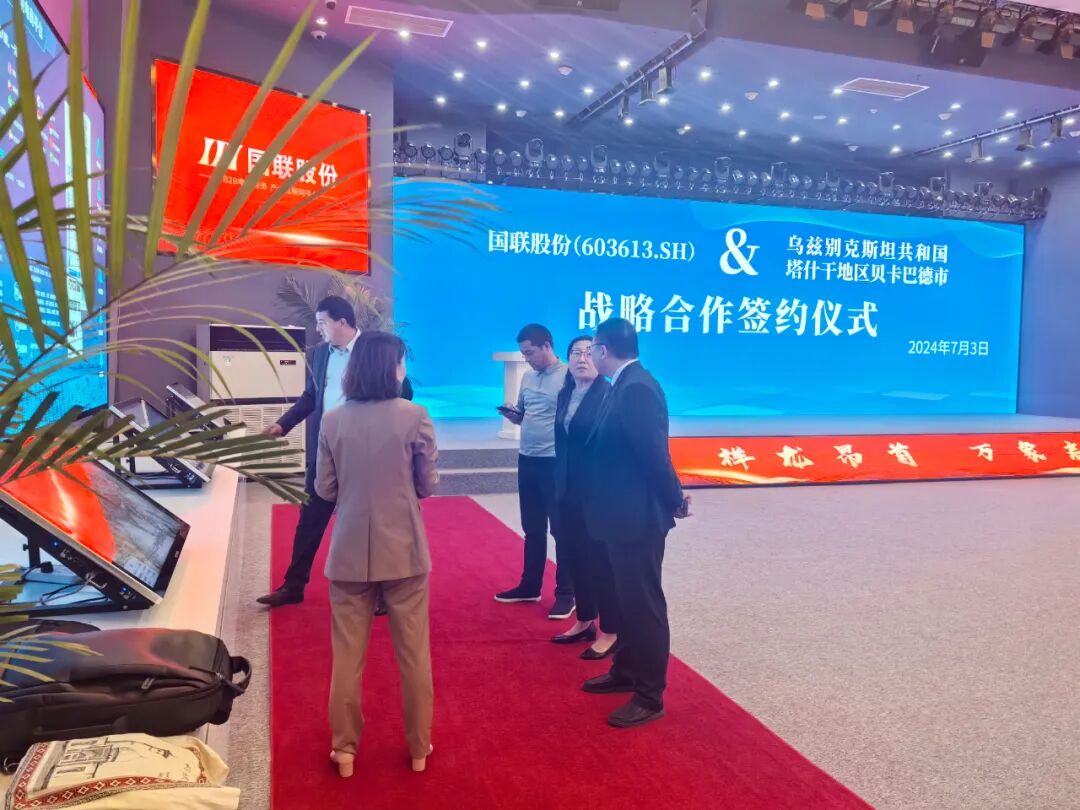 On July 3, United Nations Co., Ltd. (603613.SH) and the Bekabad City Government Office held a strategic cooperation signing ceremony for multiple joint investment projects in Bekabad City, Tashkent Region, Republic of Uzbekistan. Bekabad City Mayor Babayev Nurilayevich and his delegation of three, United Nations Co., Ltd. Chief Financial Officer Tian Tao, Vice President Cui Lili, Director of the Overseas Business Department Li Lingyun, and other leaders attended the strategic cooperation signing ceremony and conducted in-depth work exchanges.