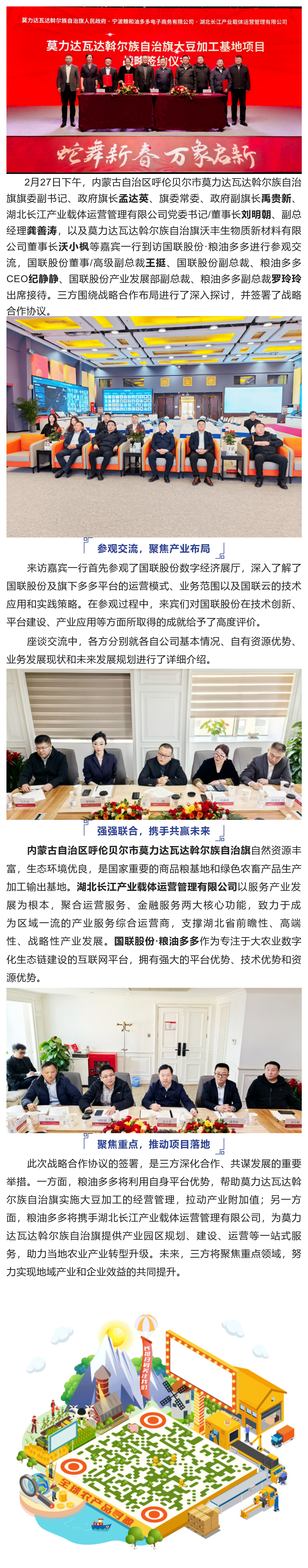 Deepening Cooperation for Shared Development: Morida Wa Autonomous Banner of Inner Mongolia, Hubei Yangtze River Industrial Platform, and Guolian Shares·Liangyou Duoduo Sign a Strategic Cooperation Agreement.