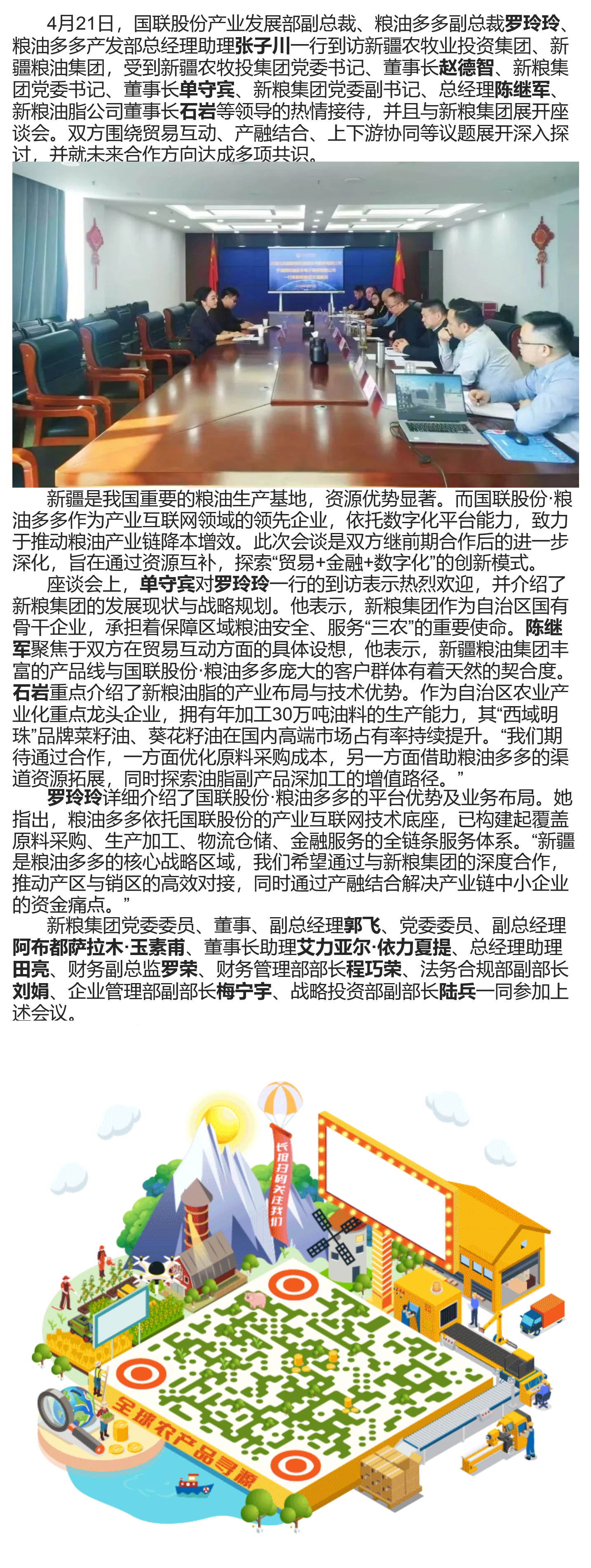 Guolian Co., Ltd. Cereals and Oils Duoduo Visited Xinjiang Agriculture and Animal Husbandry Investment Group and Xinjiang Cereals and Oils Group for Discussion and Exchange