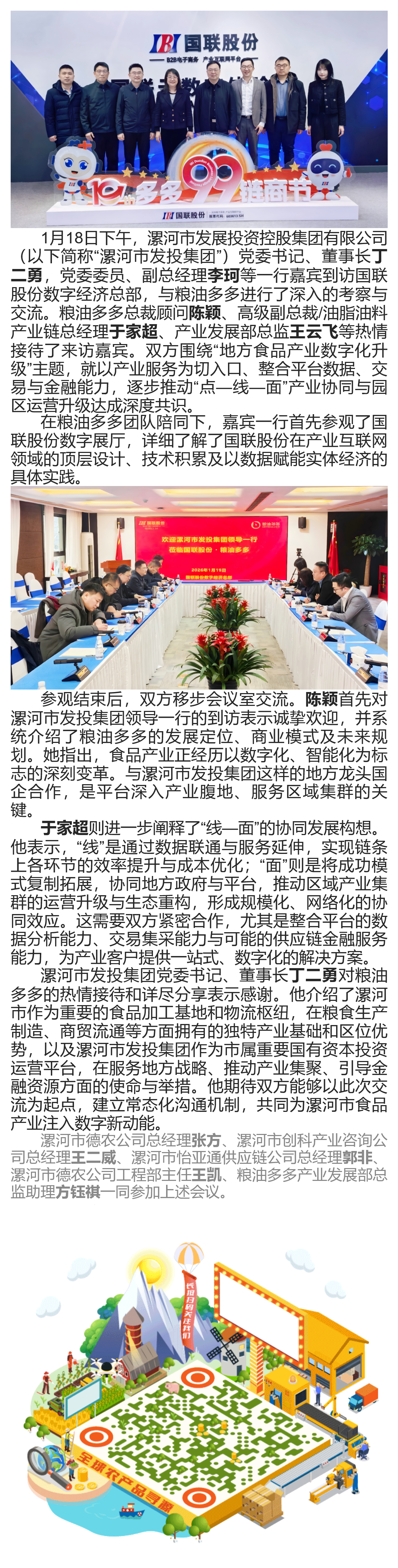 Luohe City Development Investment Group and its delegation visited Guolian shares, Cereals and Oils