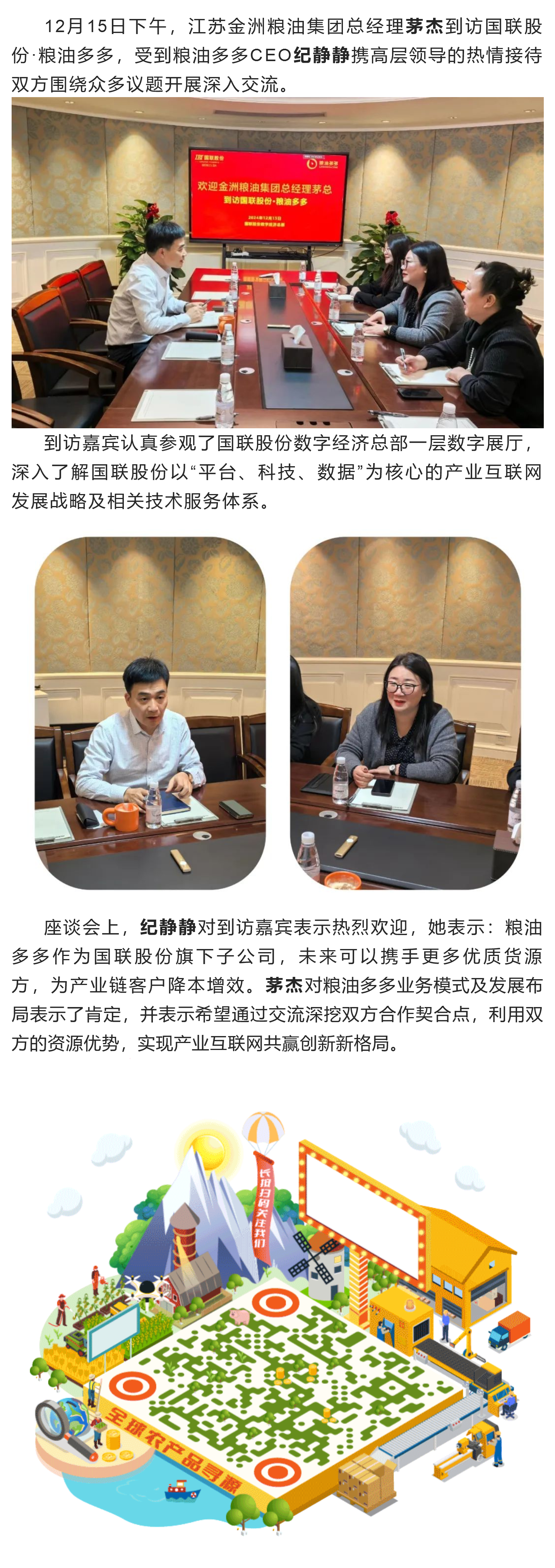 Mao Jie, General Manager of Jiangsu Jinzhou Grain and Oil Group, paid a visit to China National United Holdings Co., Ltd.’s Grain & Oil Duoduo platform.