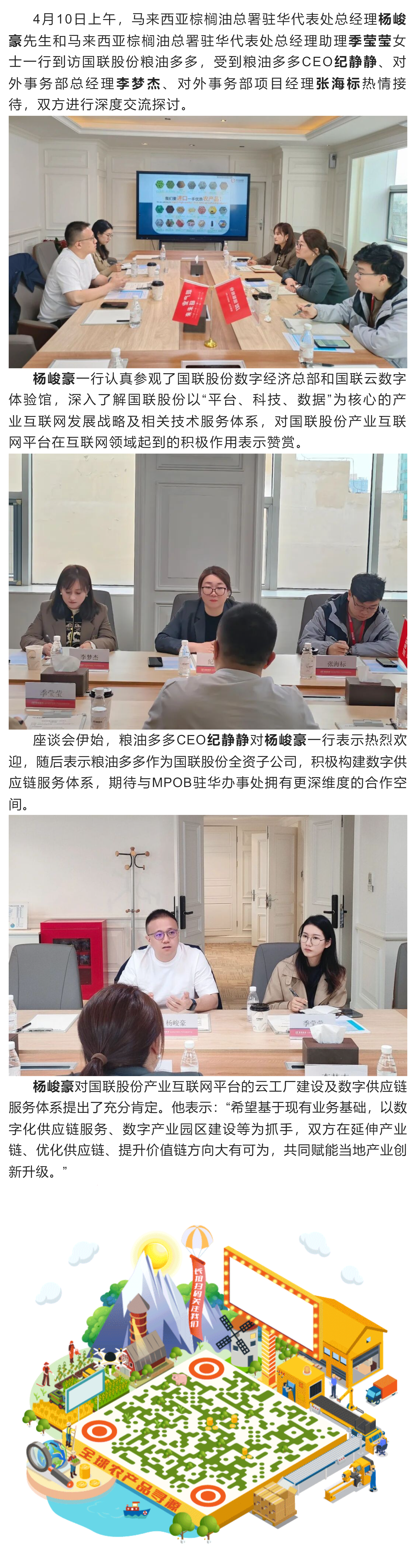 Mr. Yang Junhao, General Manager of Malaysia Palm Oil Administration (MPOB) in China, and his delegation visited Cereals and Oils Duoduo again