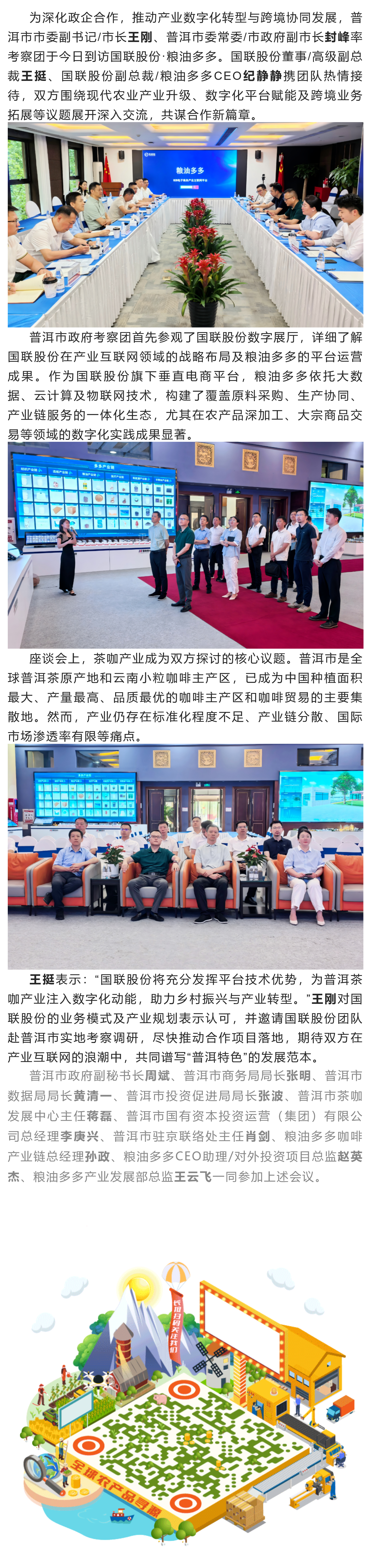 The delegation of Pu'er Municipal Government visited the League of Nations, Cereals and Oils to discuss the new pattern of digital development of modern agricultural industry.