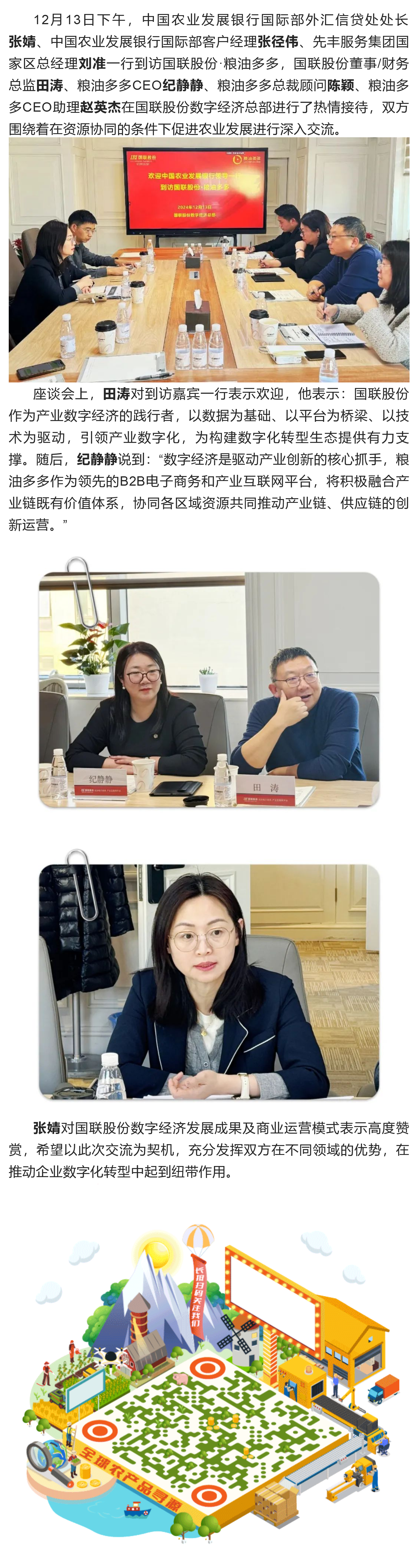 A delegation of guests from the Agricultural Development Bank of China visited Sinograin Group’s Grain & Oil Duoduo platform.