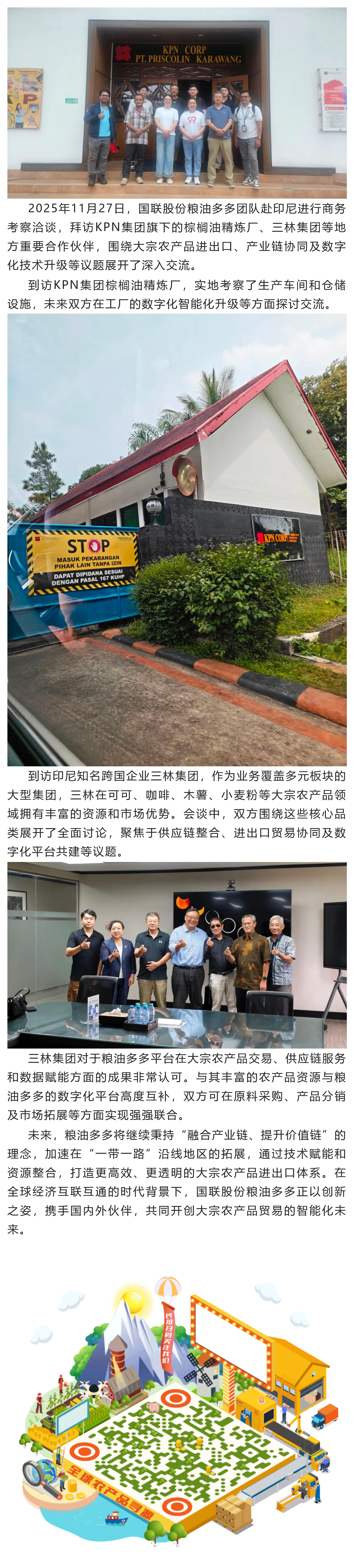 The Guolian Grain and Oil Duoduo team went to Indonesia for in-depth research to create overseas cloud factories and cross-border digital cooperation.