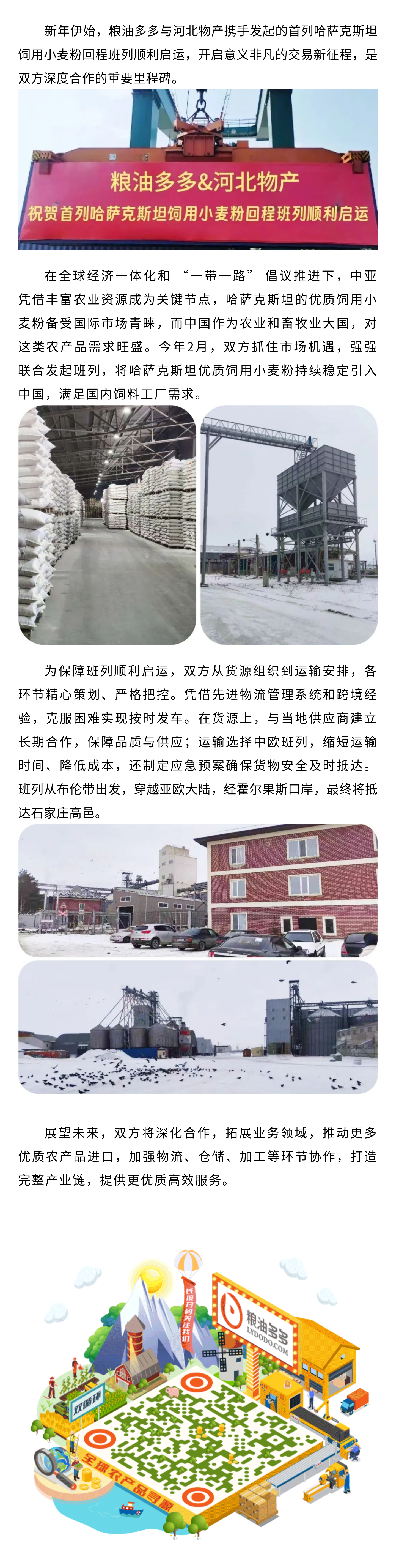 New Year kickoff! Liangyou Duoduo, in collaboration with Hebei Commodity Corporation, successfully dispatched the inaugural block train carrying Kazakh feed-grade wheat flour to China.
