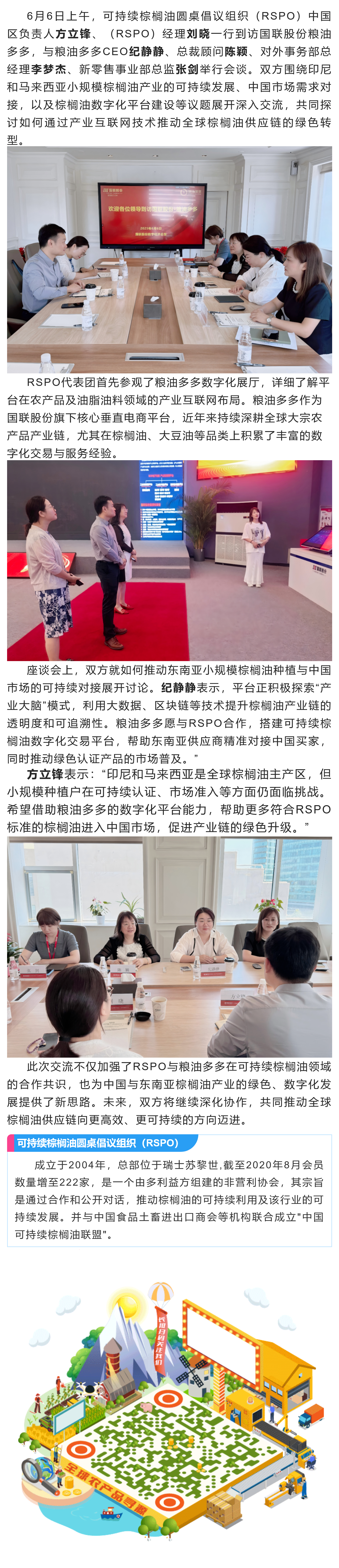 The Sustainable Palm Oil Roundtable Initiative (RSPO) and its delegation visited the League of Nations, Cereals and Oils for more visits and exchanges.